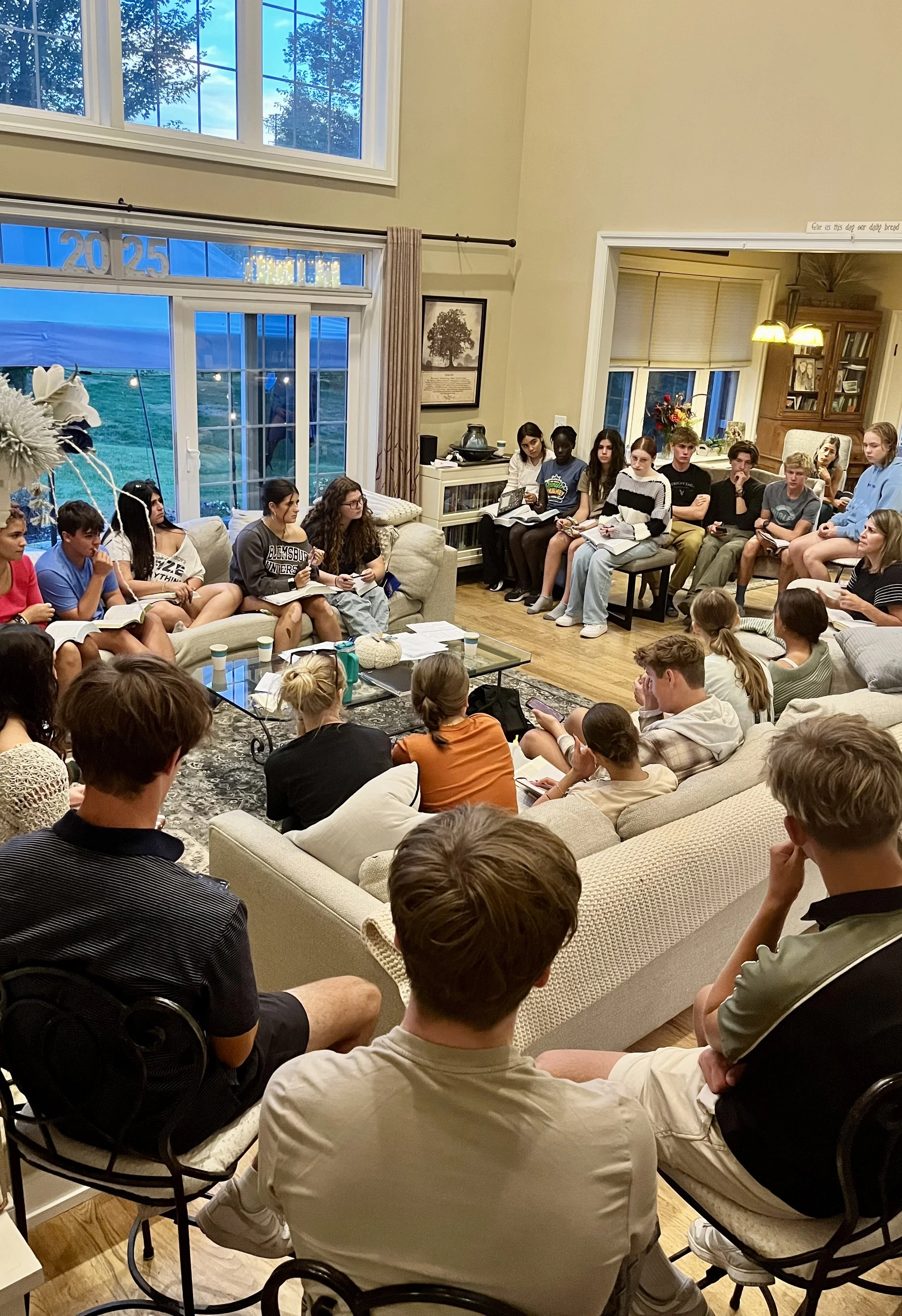 Teens gather around the tables, firepits, and living room with a warm, homemade dinner, and engage in biblical practices from The Way of Becoming, diving into their stories.
